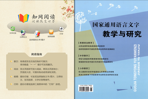 《国家通用语言文字教学与研究》是经国家新闻出版广电总局批准备案的语言文字教育综合类专业学术期刊(月刊)。主要栏目:大学论坛、思政教育、语言研究、中学教学、职业教育、小学教育、学前教育、艺术教学等。本刊系中国核心期刊(遴选)数据库、中国学术期刊综合评价数据库、中国学术期刊(光盘版)等收录期刊,中国知网(CNKI)数据库全文收录期刊。在本刊发表的论文可在职称评定、职务晋升、业绩考核及岗位竞聘中起到重要科研认定作用。